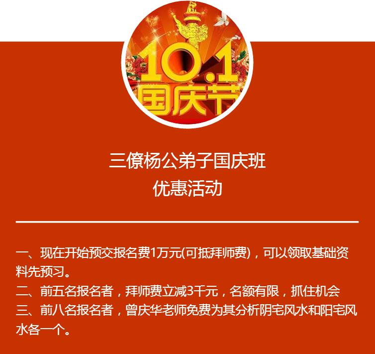 四、拜师费:4万6千8百元,前5名报名者学费立减3千元。名额有限,需要学习杨公三元风水的朋友请赶快报名。