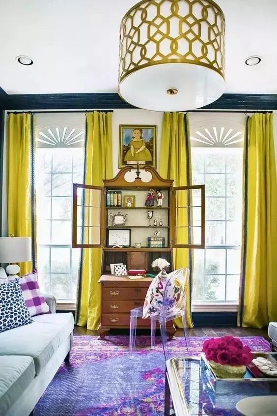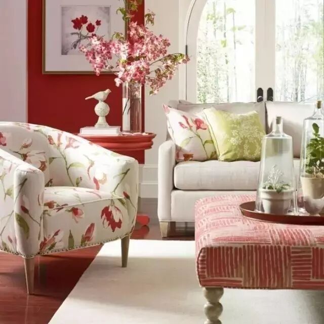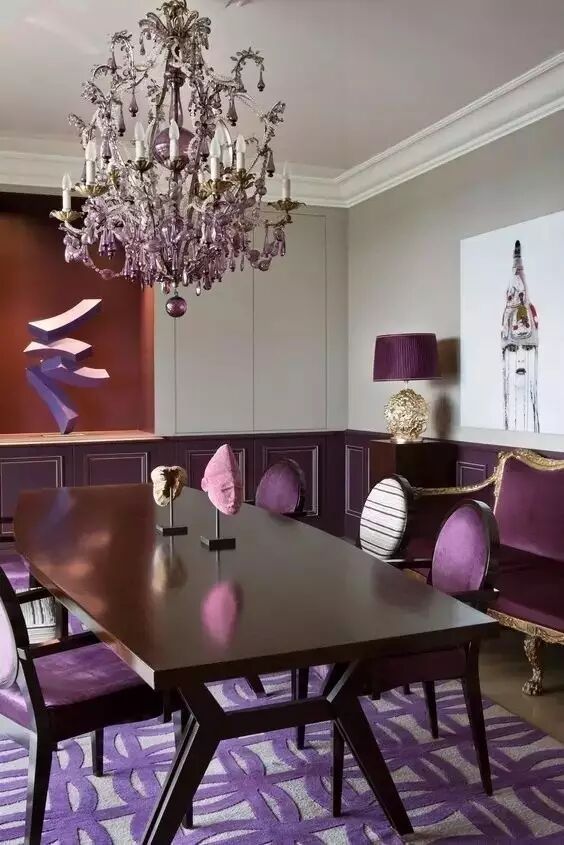 至于代表五行中火的红、紫色系列,可以少量用于空间中,因为木生火的关系,木见旺火则有耗损之象。